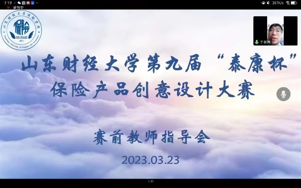 为提升我校大学生在保险领域的学术创新水平,锻炼同学们将理论与实践相结合的能力,使同学们对保险产品设计有更进一步的理解,杏吧视频 学生会创新实践部于腾讯会议召开第九届“泰康杯”保险产品创意设计大赛赛前指导会。