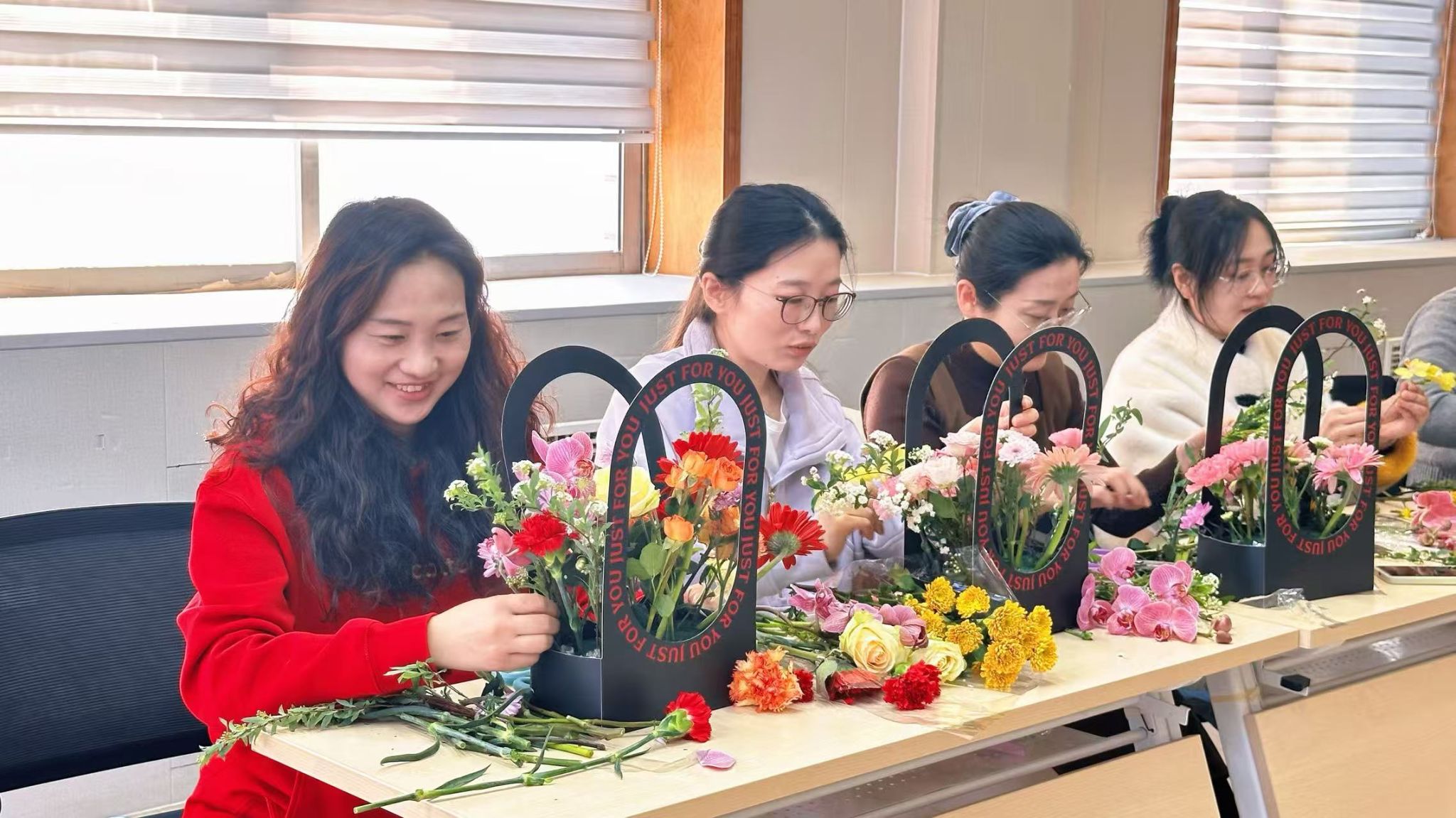 春风送暖,芳华绽放。为丰富女性同胞精神文化生活,传递温暖与关怀,杏吧视频 工会精心举办“繁花予你,自在芬芳”妇女节插花活动,大家以花为媒、以艺怡情,在花香与笑语中共度温馨美好的节日时光。
