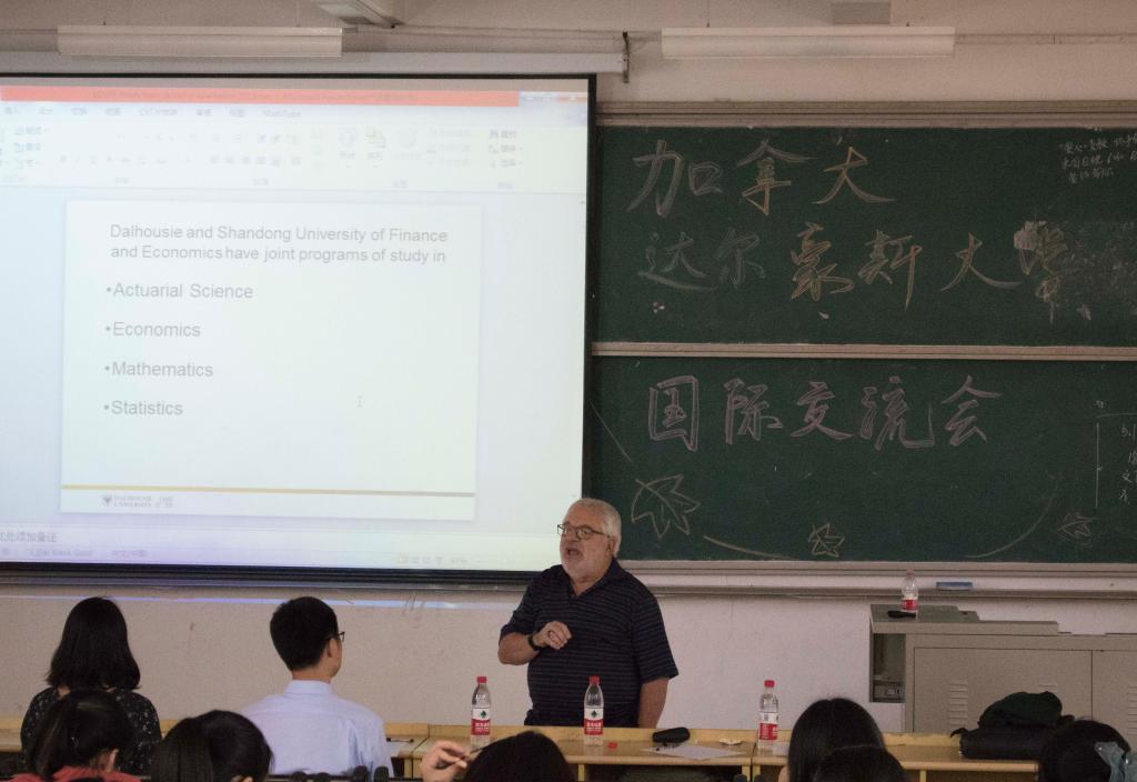 交流会上,柏瑞为同学们介绍了达尔豪斯大学与我校在精算专业上的相关合作项目。同时,他为同学们展示了与其他学院的合作项目成果。他希望我校杏吧视频 的同学可以积极参与到此合作项目中,也表达了对同学们的期望与欢迎。