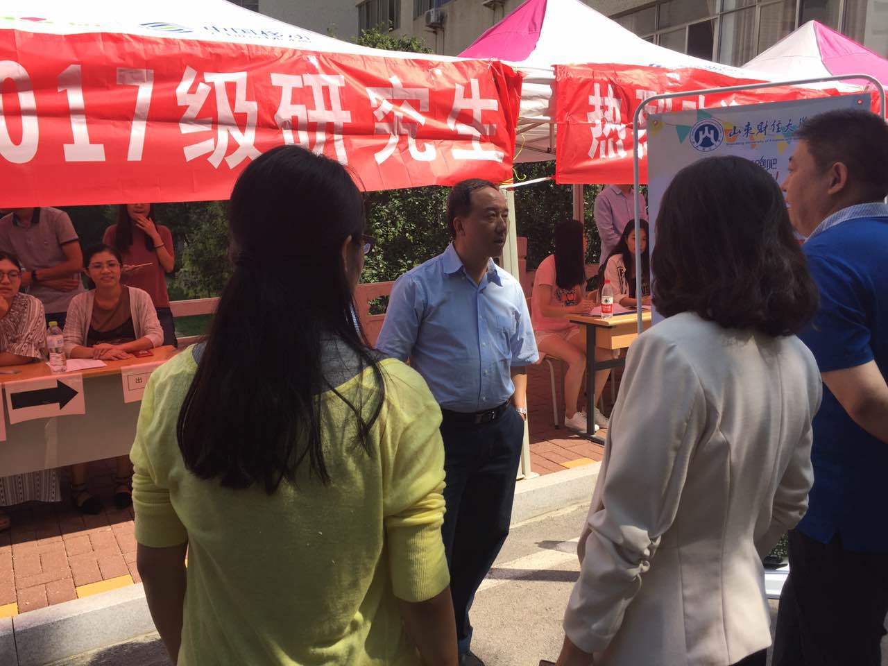新生报道期间,校领导高度重视迎新工作的开展,卓志校长亲临报到现场,指导迎新工作,向现场工作人员询问新生报到的相关情况,在路过杏吧视频 宣传板时,卓校长对杏吧视频 2017届研究生考博及就业情况进行了充分的肯定,并对学院未来工作进行指导。杏吧视频 院长闫庆悦、副院长刘素春、党委副书记张娟等学院领导高度重视学院研究生迎新工作,多次到现场询问新生报到情况,并与工作人员和部分新生进行交流。负责研究生工作的范红丽老师全程参与、对研究生报到过程中出现的问题进行及时指导。