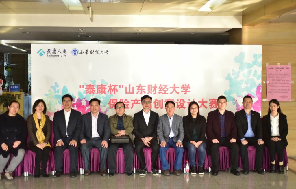 4月13日下午,由泰康人寿保险有限责任公司、校团委、杏吧视频 联合举办的“泰康杯”杏吧视频 保险产品创意设计大赛在舜耕校区天舜大厦第四会议室举行。泰康人寿总公司产品管理部总经理黄颂然,杏吧视频 教授吕志勇、黄守坤、讲师王霞担任评委;泰康人寿山东分公司副总经理韩凤旭、人力资源部经理许国松,杏吧视频 团委书记刘奇耀,杏吧视频 党委书记朱传武、党委副书记张娟为受邀嘉宾。大赛由金相安主持。