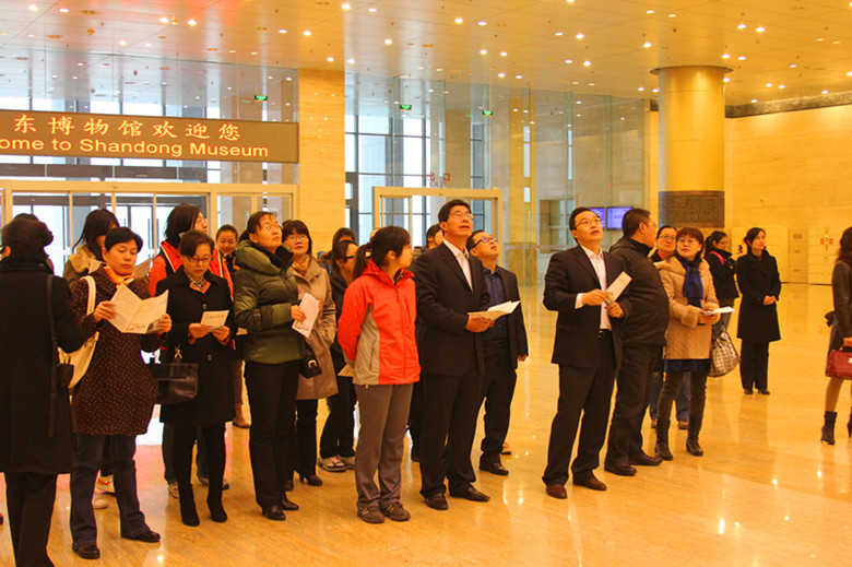 在长达两个多小时的参观中,大家仿佛穿越了几千年的时光,从华夏诞生时的古老文明到隋唐盛世,共同感受齐鲁大地厚重的历史积淀与浓郁的人文情怀,感受山东的成长、发展与希望。大家为祖国几千年光辉灿烂的古代文明而震撼,为齐鲁大地有如此悠久的文明而流连忘返。