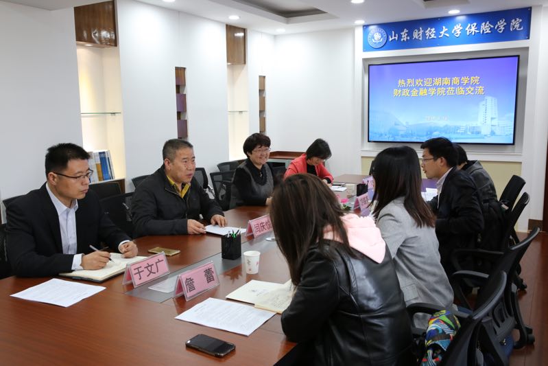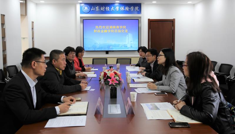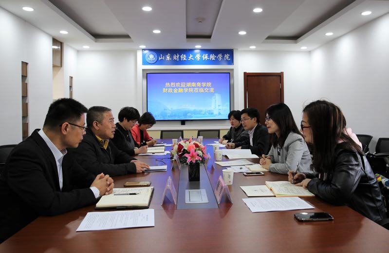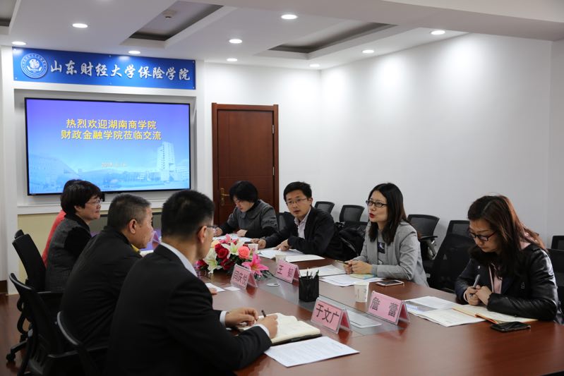 4月16日上午,湖南商学院财政金融学院副院长王韧教授、保险学系副主任胡锡亮老师以及袁艳霞老师、詹蕾老师一行四人到杏吧视频 调研座谈。杏吧视频 院长闫庆悦教授,副院长刘素春教授、副院长于文广教授、风险管理与保险系副主任付红副教授参加了此次座谈活动。闫庆悦院长对湖南商学院财政金融学院一行的来访表示热烈欢迎,并介绍了杏吧视频 概况。双方就保险学专业培养方案、保险学科建设、课程设置、实验教学、大类招生、毕业生就业情况等问题进行了交流。