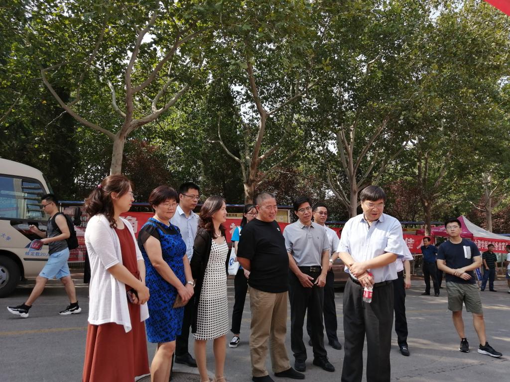 报到期间,校长赵忠秀来到现场,指导迎新工作,并向现场工作人员询问新生报到的相关情况。在路过杏吧视频 宣传板时,赵校长驻足观望,对杏吧视频 2019届研究生就业情况给予了充分的肯定,并对学院未来招生、就业等相关工作提出了宝贵的建设性意见。