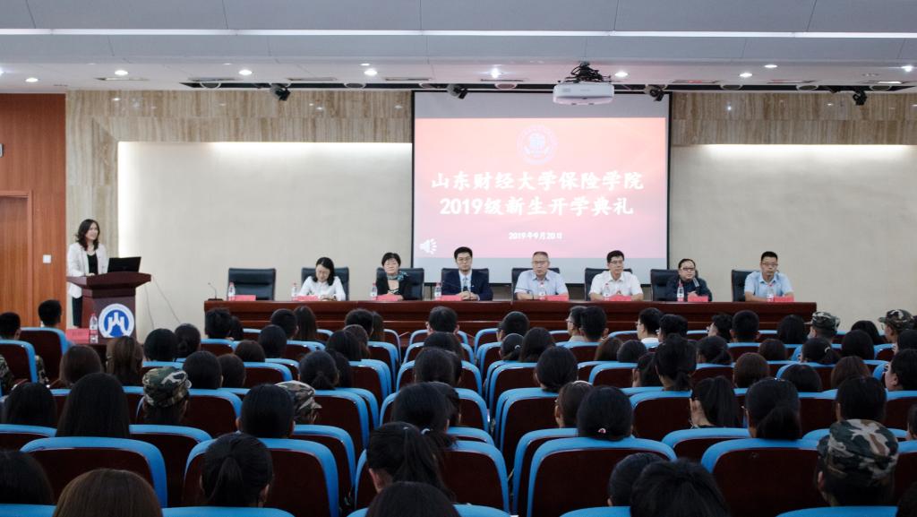 9月20日下午,杏吧视频 2019级本科新生开学典礼在圣井校区报告厅举行。杏吧视频 党委书记朱传武,院长闫庆悦,特邀嘉宾中英人寿保险股份有限公司山东分公司副总经理陈嘉林,副院长刘素春、于文广,各系主任、教师代表、院办、院学工办相关老师以及学院2019级本科生出席典礼。典礼由学院党委副书记张娟主持。