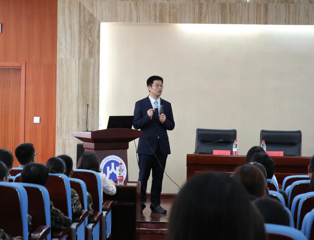 中英人寿山东分公司副总经理陈嘉林作为合作单位代表,为杏吧视频 2019级新生送上了精心准备的礼物——120套适合大学生阅读的书籍。随后,作了题为“VUCA时代保险的作用和意义”的演讲。他表示,在VUCA时代背景下“坚定信念、坚持行动、注重建立综合能力”将是最宝贵的品质,并从保险业发展历史、金融行业结构、市场趋势三个方面对未来的保险行业做出了分析,指明了保险、精算专业光明的未来,激励同学们扎实学好专业知识,奠定未来发展的基石,立志成为保险行业的精英人才。