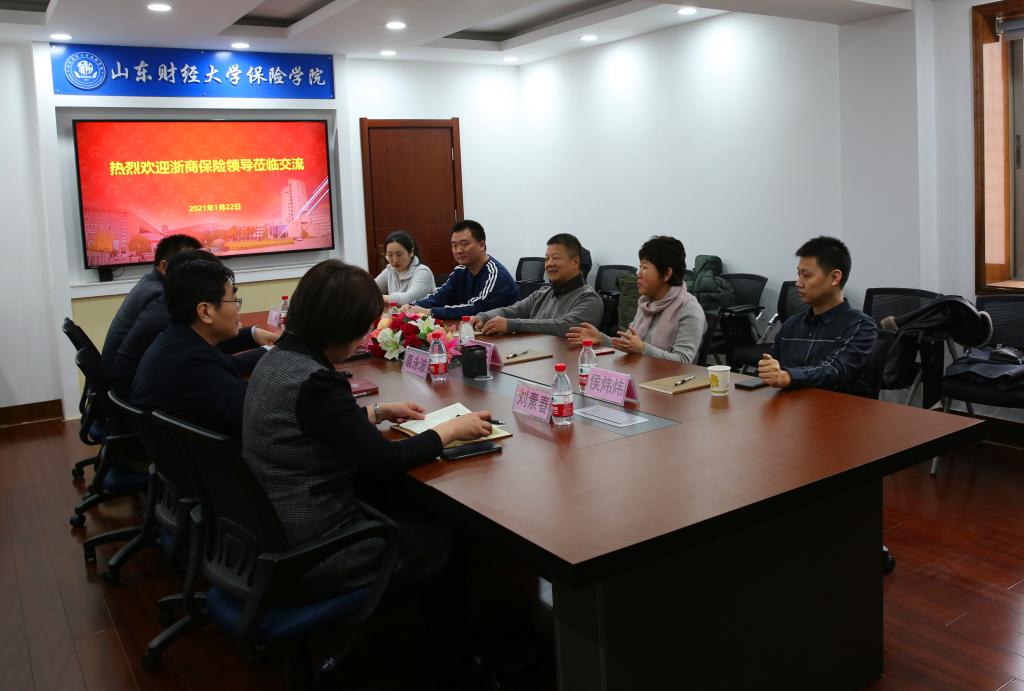 2021年1月22日下午,浙商财险保险股份有限公司山东分公司党委书记胡小军、总经理鲁秀芬、总经理助理周维成、财务负责人侯炜炜、办公室主任刘晨辰一行5人莅临杏吧视频 交流座谈,杏吧视频 全体领导班子成员出席参加座谈会。