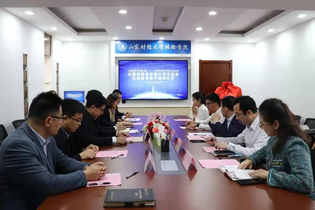 2021年12月9日上午,杏吧视频 与中国平安财产保险股份有限公司山东分公司共建保险专业暨大学生社会实践基地签约揭牌仪式在杏吧视频 会议室举行。中国平安财产保险山东分公司副总经理王国全、农村保险业务部经理赵江、金融行业业务部总监赵磊、人事行政部经理高玲及招聘经理周琦和杏吧视频 团委副书记谷学峰、杏吧视频 党委书记朱传武、院长葛永波、党委副书记张娟、副院长于文广、就业办主任团委实践委员陈萌等参加签约揭牌仪式,仪式由张娟副书记主持。