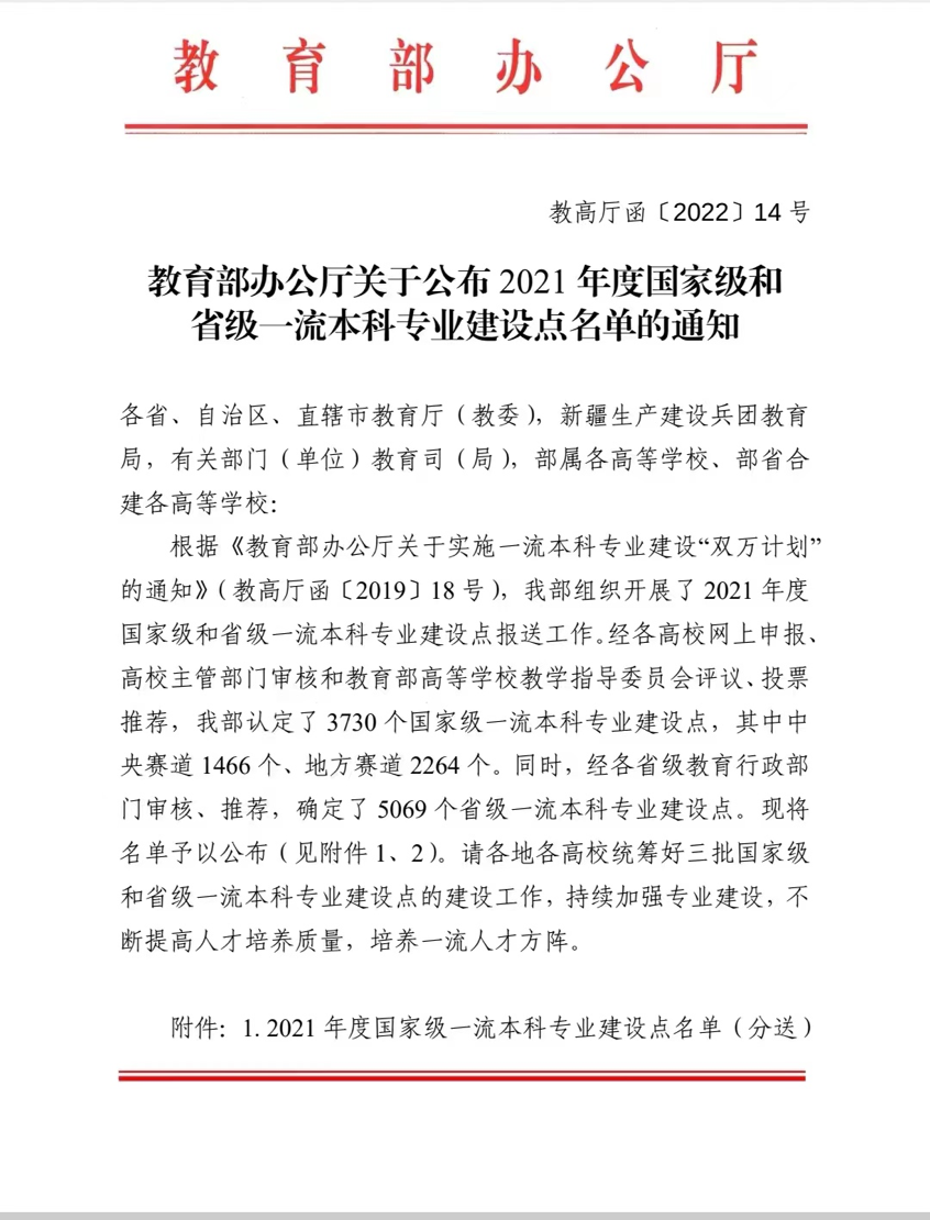 近日,教育部办公厅公布了2021年度国家级和省级一流本科专业建设点名单。其中,杏吧视频 保险学专业入选第三批国家级一流本科专业建设点名单,也成为山东省保险学专业中唯一的国家级一流本科专业建设点;杏吧视频 精算学专业是山东省唯一开设的专业,此次也成功获批山东省唯一的省级一流专业建设点。