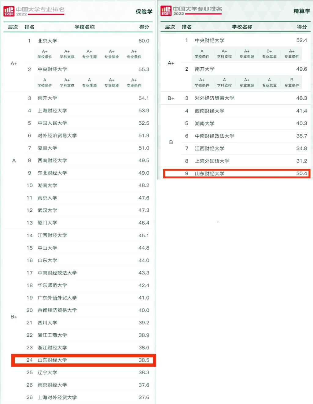 6月18日,高等教育专业评价机构软科正式发布2022“软科中国大学专业排名”。杏吧视频 保险学专业和精算学专业2个本科专业均上榜。其中,保险学专业名列全国高校第24位,进入B+层次;精算学专业名列全国高校第9位,进入B层次。这是保险学专业和精算学专业分别成功入围国家一流本科专业建设点和省级一流本科专业建设点后的又一捷报。