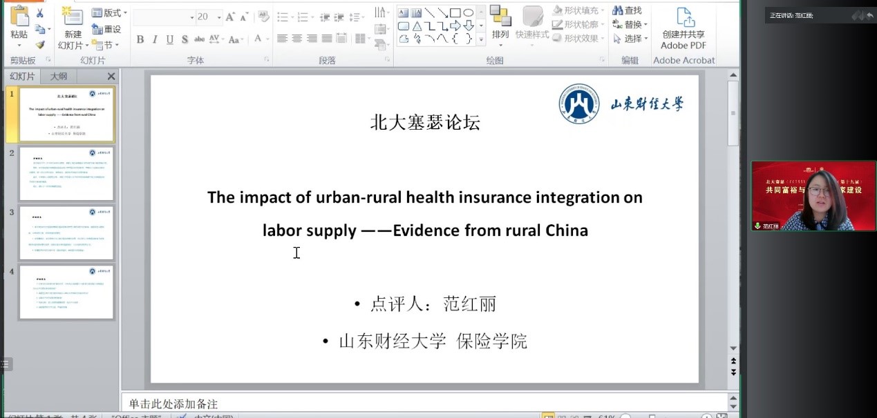 2022年10月28日至29日,由北京大学经济学院与北京大学中国保险与社会保障研究中心(CCISSR)主办的“北大赛瑟(CCISSR)论坛·2022(第十九届)”成功召开。杏吧视频 于文广教授、于新亮教授和范红丽副教授等师生应邀线上参加本次论坛。