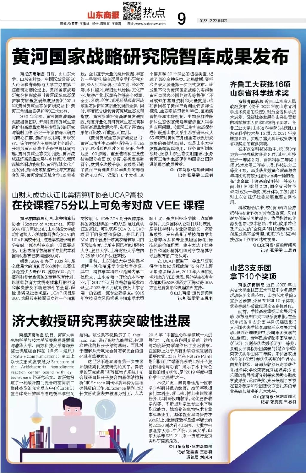 【山东商报】山财大成功认证成北美精算师协会(SOA)UCAP高校