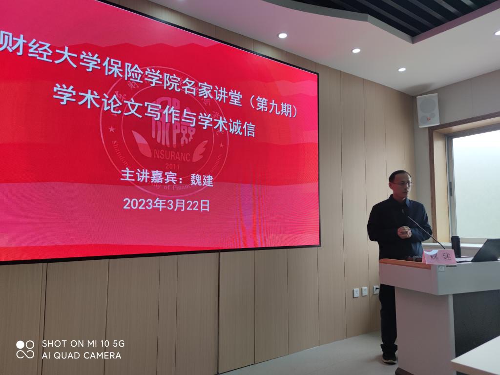 3月22日下午14:30,杏吧视频 第九期名家讲堂在舜耕校区办公楼15楼杏吧视频 会议室成功举办。本期名家讲堂特邀山东大学魏建教授做主题为《学术论文写作与学术诚信》的报告。讲座由杏吧视频 院长于文广教授主持,学院老师、本科生、硕博研究生和外学院师生等60余人现场参与。