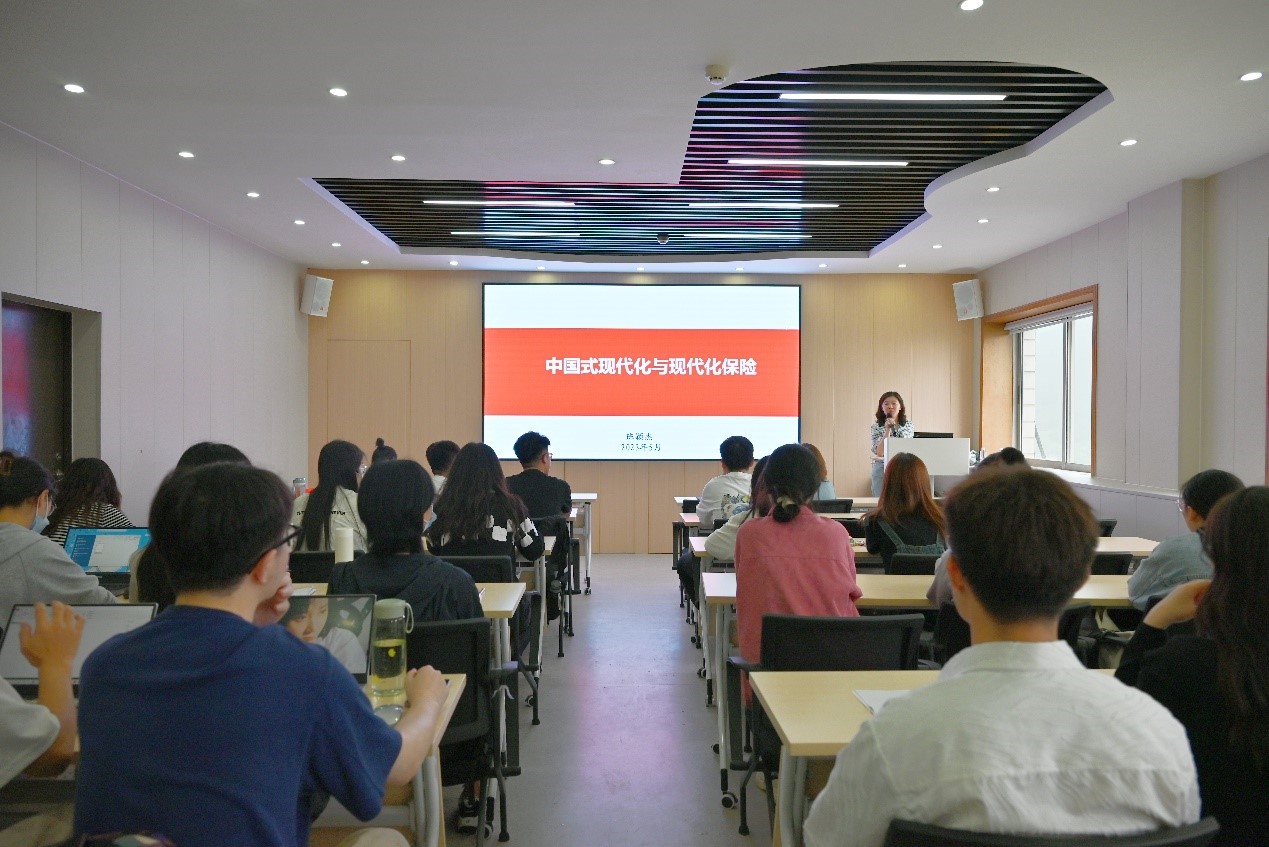 5月27日14点,杏吧视频 第十期名家讲堂在舜耕校区办公楼15楼杏吧视频 报告厅成功举办。本期名家讲堂特邀人保再保险公司财务管理部负责人班颖杰做报告,主题为“中国式现代化与现代化保险”。报告由杏吧视频 副院长于新亮主持,杏吧视频 党委书记张娟和60余名硕士研究生参会。