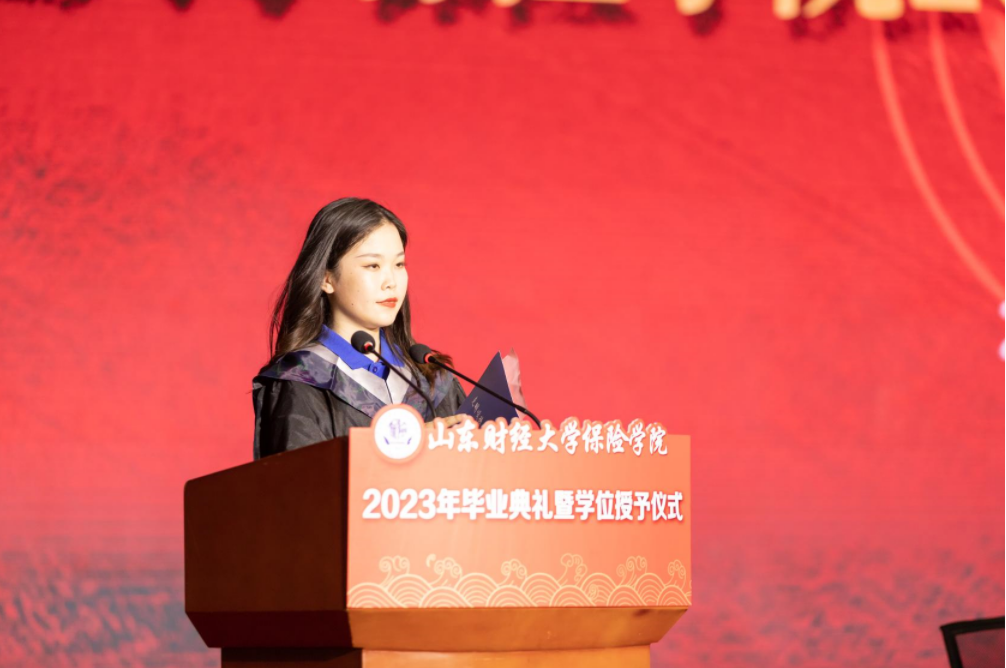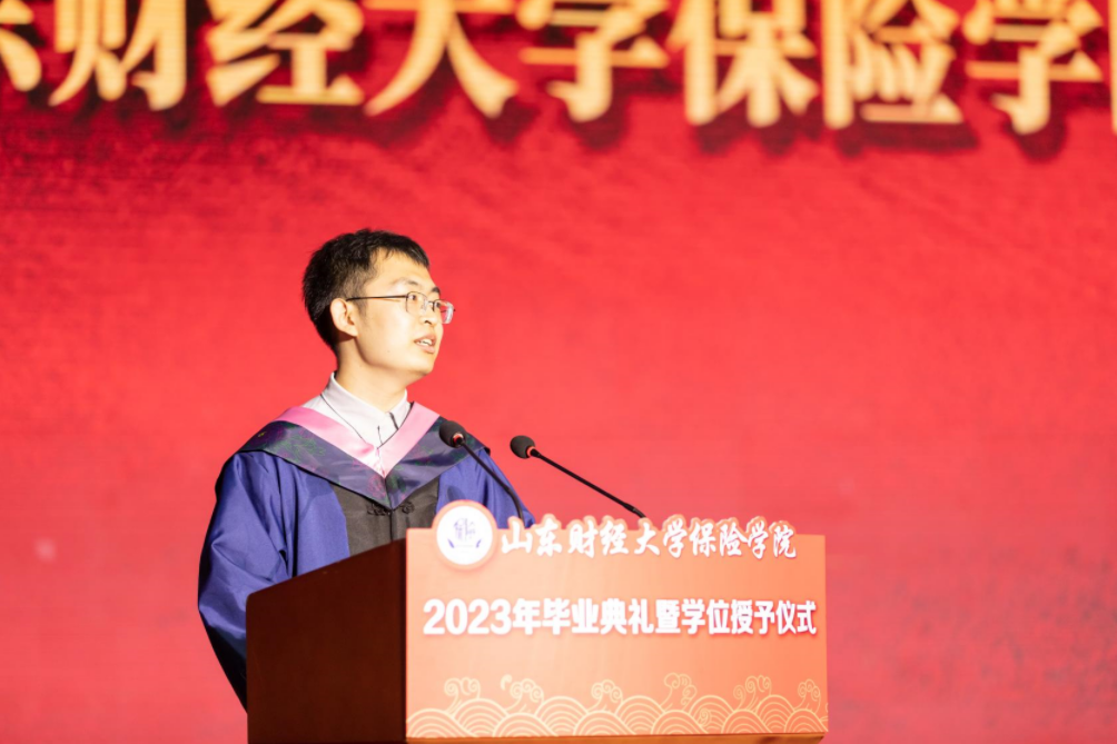 研究生毕业生代表乔智、本科生毕业生代表宋佳依次发言。他们深情表达了对母校、学院、恩师、同窗和家长朋友的崇高敬意与真挚感谢,分享了自己大学求学生涯的感想体会和温馨时光,难忘在保院耕耘收获的记忆,未来愿与师友家人一同前行并号召全体毕业生以传承与革新的精神迎接新的挑战,引发现场毕业生的强烈共鸣。