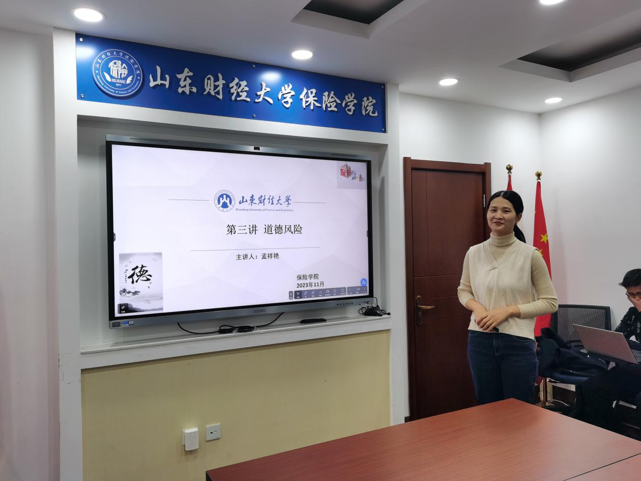 随后,范红丽介绍了本次比赛的顺序、规则以及打分标准。八位青年教师依次就道德风险、森林保险、人寿与健康保险、保险投资原理、保险合同主体、统计学习在精算科学中的应用、最大诚信原则和保险会计的前提和基础等多个专业核心课程的主要章节和知识点进行教学展示。参赛青年教师们声情并茂,挥洒自如,以新颖独特的课堂设计,条理清晰的教学表达,自然合理的课堂思政进行沉稳从容的讲授。良好的课堂教学效果,展示出杏吧视频 青年教师较高的职业素养和专业水平,赢得了评委和观摩教师们的一致好评。