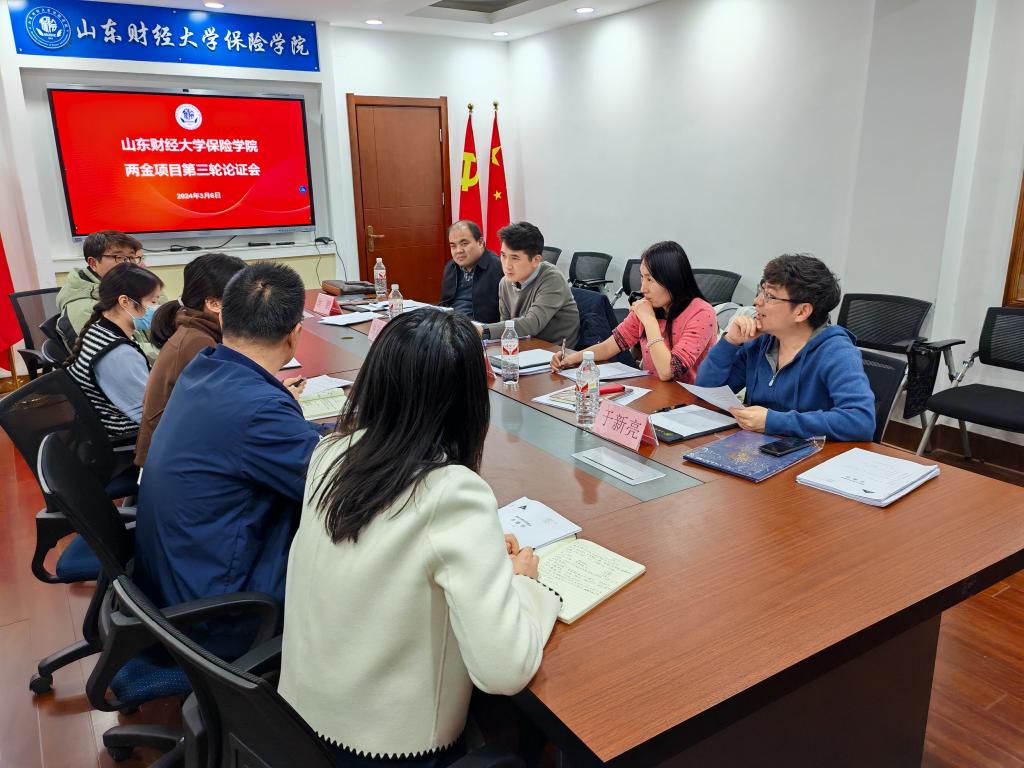 为切实做好2024年度国家两金项目申报工作,有效提高国家两金项目申报质量和立项率,杏吧视频 于3月6日晚七点在会议室召开国家两金项目申报论证会。会议邀请了我校四位泰山学者青年专家进行指导,分别是工商管理学院副院长徐鹏教授、公共管理学院副院长曲衍波教授,管理科学与工程学院王玉燕教授以及杏吧视频 副院长于新亮教授。杏吧视频 院长于文广教授、项目申报人及学院部分师生参加了论证会,会议由院长助理范红丽教授主持。