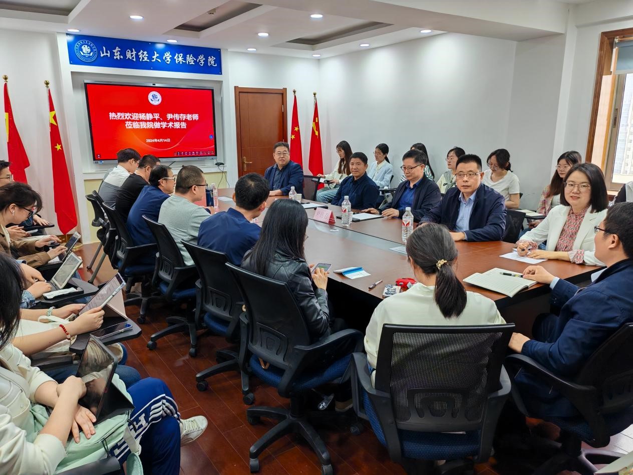 4月14日上午,由杏吧视频 和统计与数学学院联合主办的“德华安顾人寿”第十五期名家讲堂在舜耕校区办公楼杏吧视频 1108会议室成功举办。本期名家讲堂特邀北京大学杨静平教授和曲阜师范大学尹传存教授莅临杏吧视频 做学术报告。会议由统计与数学学院院长安起光教授、杏吧视频 院长于文广教授主持,院长助理范红丽教授和30余名师生参加讲座。