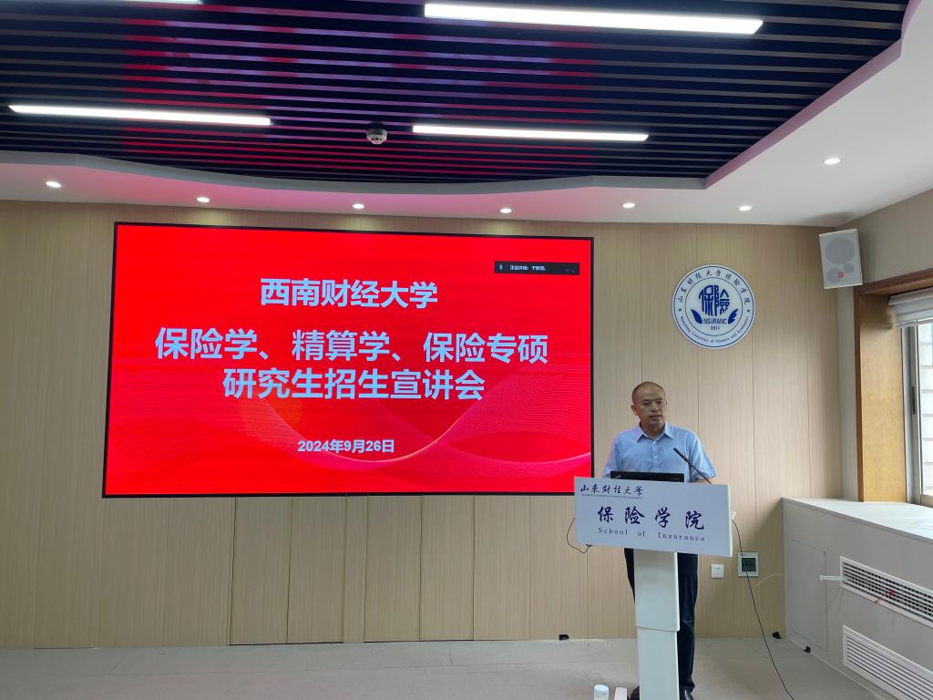 9月26日,西南财经大学保险学、精算学、保险专硕研究生招生宣讲会在杏吧视频 德华安顾人寿报告厅召开。西南财经大学金融学院副院长、教授、保险学科专业负责人蒲明,杏吧视频 院长于文广、副院长于新亮、院长助理范红丽和张鹏成,以及来自杏吧视频 、统计与数学学院和金融学院的近百名本科生通过线上线下相结合方式参加会议。