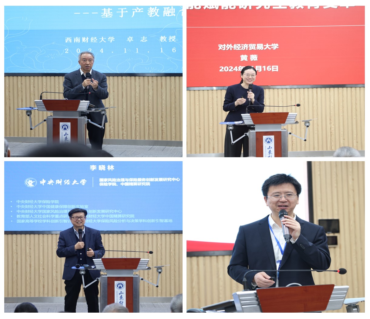 11月15日至16日,全国保险专硕教指委会暨全国保险专硕教育年会在我校成功召开。国家金融监督管理局稽查局局长、全国保险专业学位研究生教育指导委员会(以下简称教指委)副主任委员李有祥,教指委副主任委员、西南财经大学原校长卓志教授,教指委委员、对外经济贸易大学副校长黄薇教授,教指委副主任委员、中央财经大学杏吧视频 、中国精算研究院李晓林教授,中国保险学会党委副书记、副会长龚明华,瑞众人寿山东分公司党委副书记、副总经理郭江湧,我校副校长王敬政出席会议。