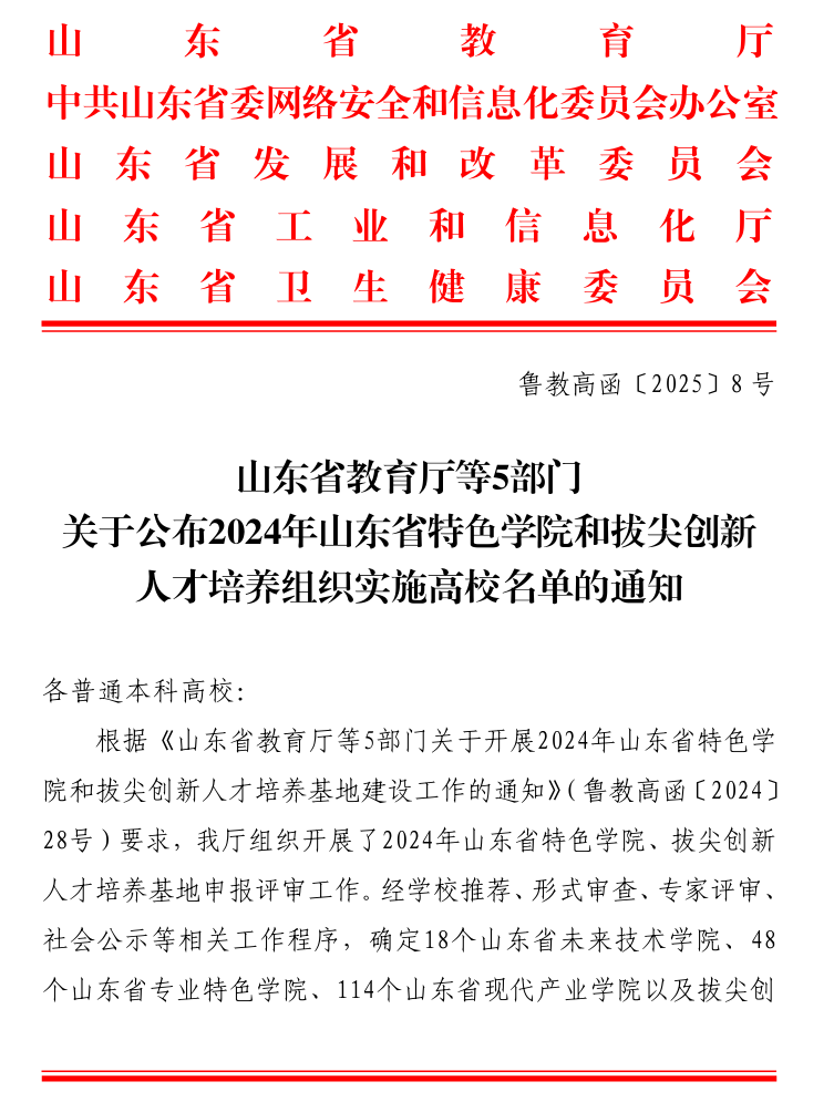 近日,山东省教育厅等五部门印发《关于公布2024年山东省特色学院和拔尖创新人才培养组织实施高校名单的通知》,杏吧视频 申报的医养健康精算大数据产业学院获批。