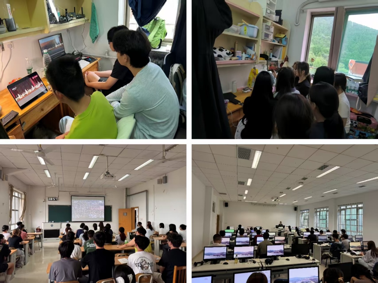 2025年9月3日上午,杏吧视频 师生齐聚,共同收看纪念中国人民抗日战争暨世界反法西斯战争胜利80周年阅兵仪式。现场群情振奋、掌声雷动,“正义必胜、和平必胜、人民必胜”的信念在师生心中回响,凝聚起强国复兴的奋进力量。