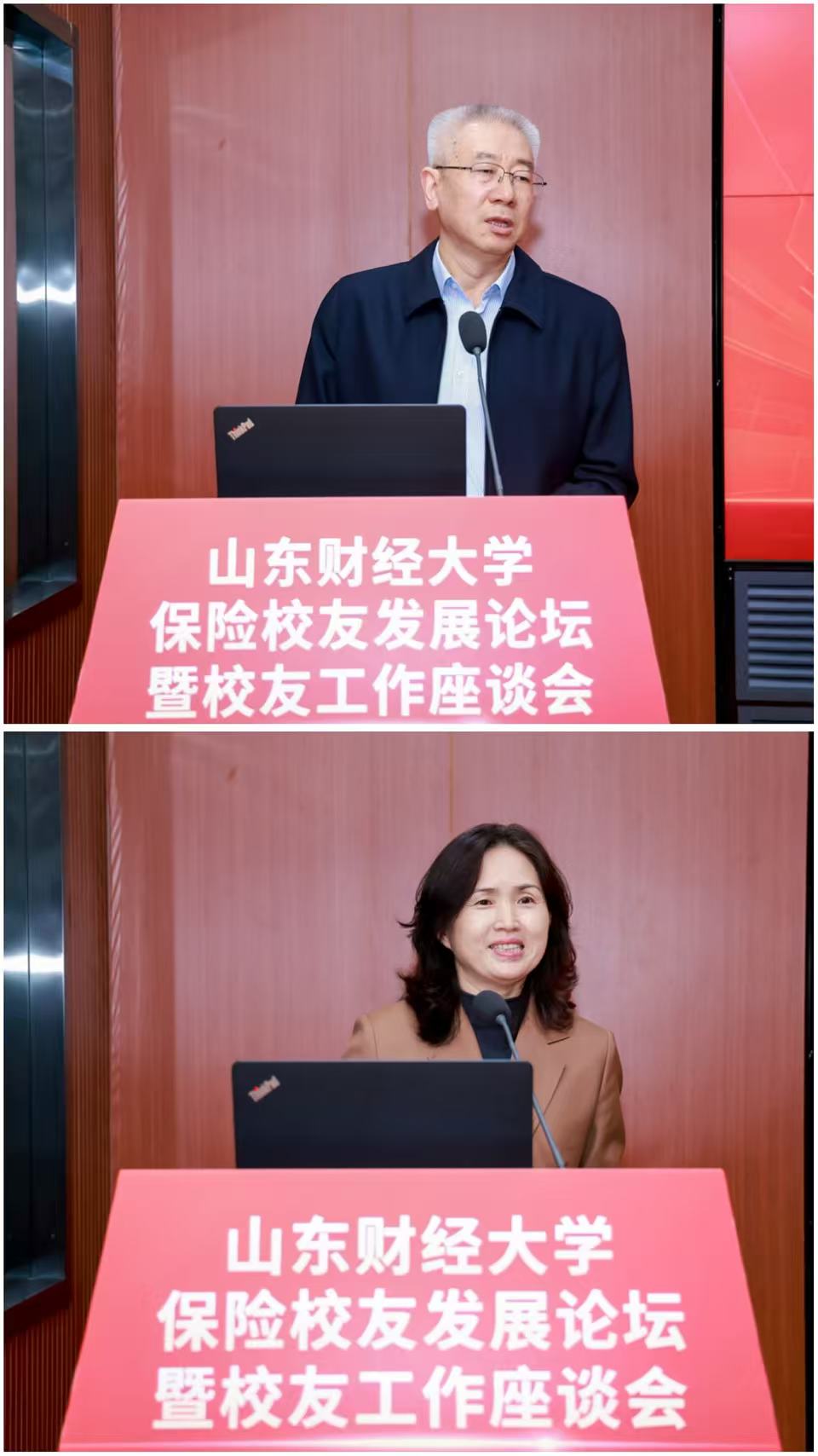 张新对校友们回到母校表示热烈欢迎,对校友们取得的成绩表示祝贺,向长期关注、支持母校发展的校友们表示衷心感谢。他简要介绍了学校近年来的发展情况,充分肯定了保险行业分会的工作成绩。他表示,学校始终秉持“服务校友、服务母校、服务社会”的宗旨开展校友工作,不断传承践行“互动、互助、互爱”的财大校友文化,开展了一系列卓有成效的活动。张新指出,当前保险行业面临数字化转型机遇与挑战,希望校友们依托论坛平台分享行业前沿动态,为学院打造齐鲁地区保险精算科创高地和人才培养摇篮建言献策。学校将持续完善校友服务体系,深化校地、校企合作,希望校友们能够一如既往地关注支持母校,为母校的发展出谋划策、贡献力量。