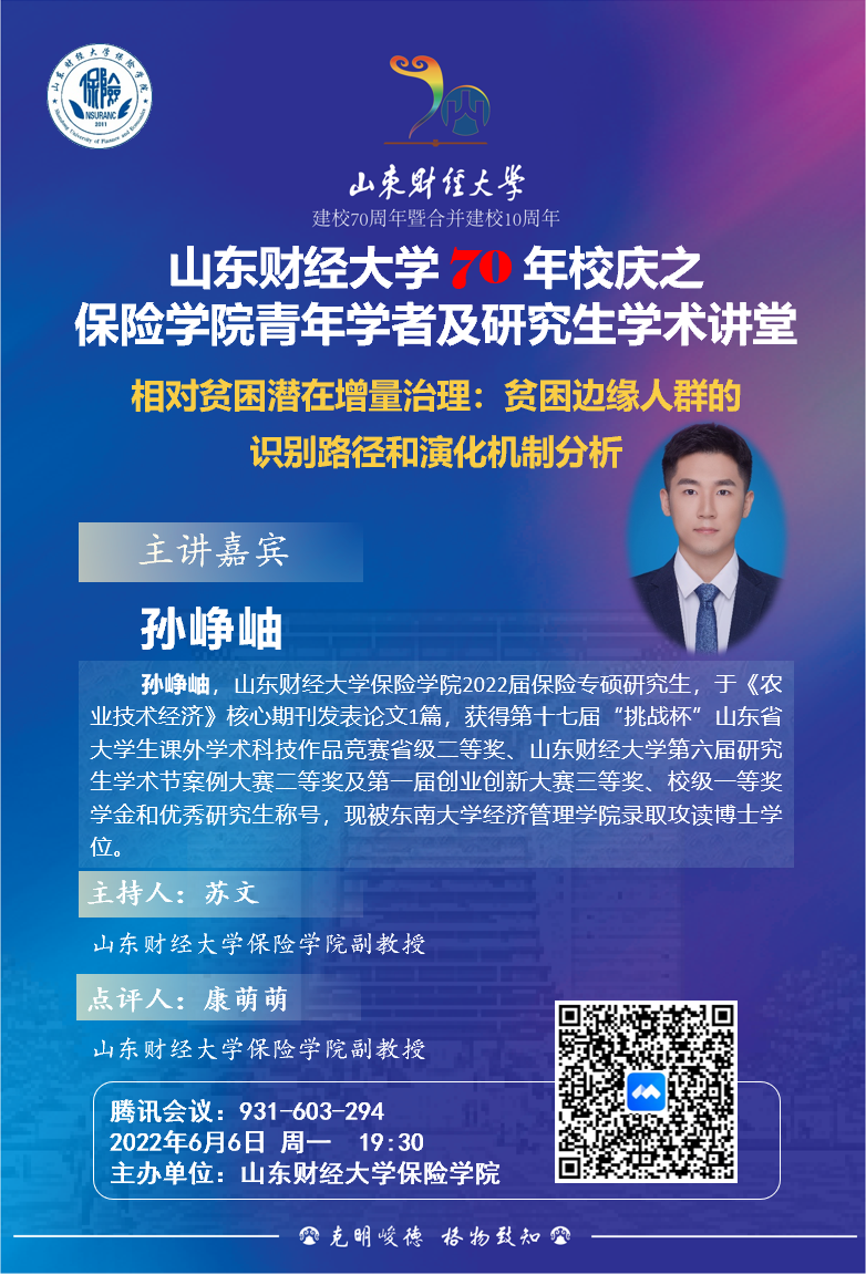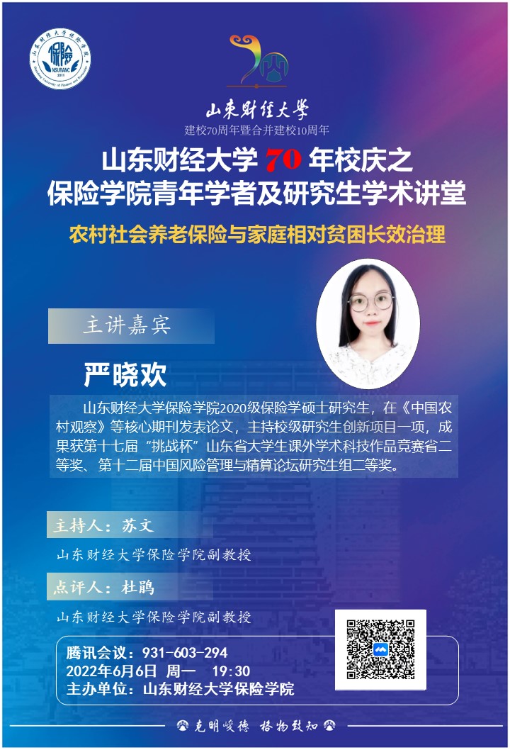 杏吧视频 70年校庆之杏吧视频 青年学者与研究生学术讲堂(第十一期):相对贫困衡量与保险保障专题研究