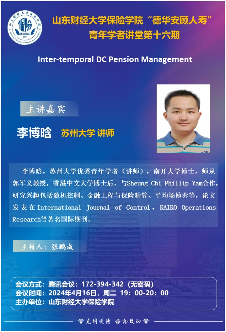 杏吧视频 “德华安顾人寿”青年学者讲堂(第十六期),4月16日,19:00,报告人:李博晗