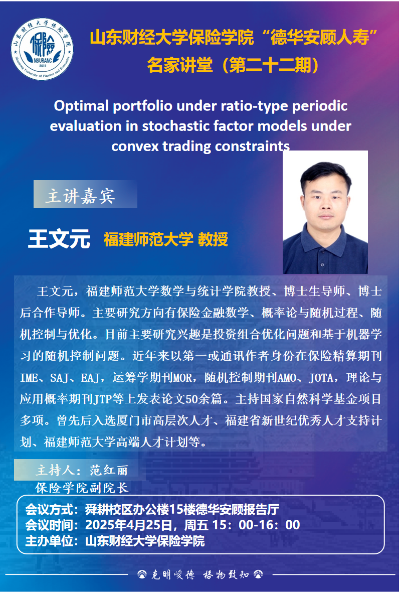 杏吧视频 “德华安顾人寿” 名家讲堂(第二十二期),4月25日,15:00,报告人:王文元