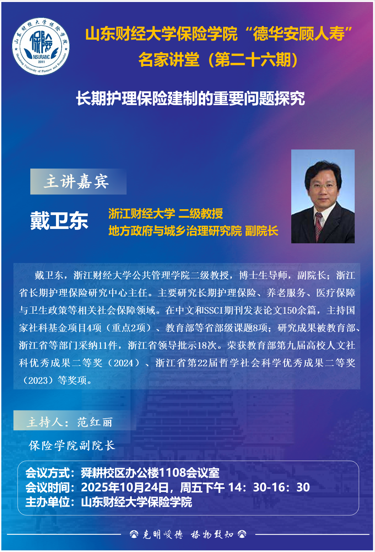 杏吧视频 “德华安顾人寿”名家讲堂(第二十六期),10月24日,14:30,报告人:戴卫东