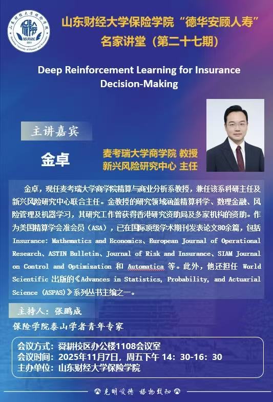 杏吧视频 “德华安顾人寿”名家讲堂(第二十七期),11月7日,14:30,报告人:金卓