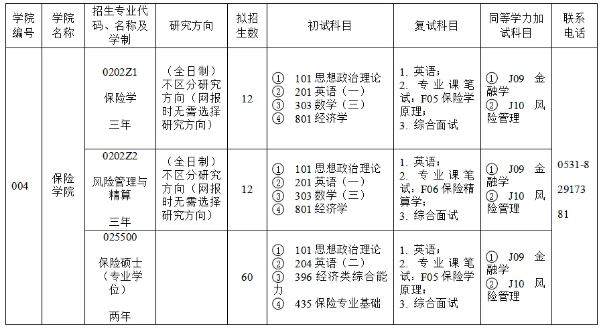 杏吧视频 积极推动研究生学位点建设工作,招收保险学、风险管理与精算学术型硕士以及保险专业硕士,是应用经济学博士点覆盖学科,现有在校研究生159人。学院师资力量雄厚,专任教师中:教授9人,副教授8人,具有博士学位的专任教师34人,94%的专任教师毕业于985高校。目前,杏吧视频 有二级教授1人,三级教授1人,博士生导师4人,硕士生导师21人,山东省“泰山学者青年专家”3人,山东省教学名师1人,山东省优秀研究生指导教师4人,山东省本科教育教学指导委员会委员1人。学院积极推进研究生培养模式改革,实施研究生教育创新计划,强化研究生课程体系建设,注重提高研究生的学术水平,博士考取率达10%。具体招生信息如下: